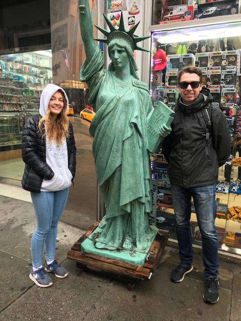 Leaving the verdant parkland bordering right up to the mega metropolis, crossing the George Washington bridge over the meandering Hudson River into New Jersey, we were greeted with serrated views of the expansive NYC skyline. Travelling into one of the busiest bus terminals in the world, The Port Authority, images of the 70’s woe begotten, grungy, junkie riddled downtown were immediately dismissed for the welcoming, since disinfected, vibe of the big city of bright lights and endless tourist options.