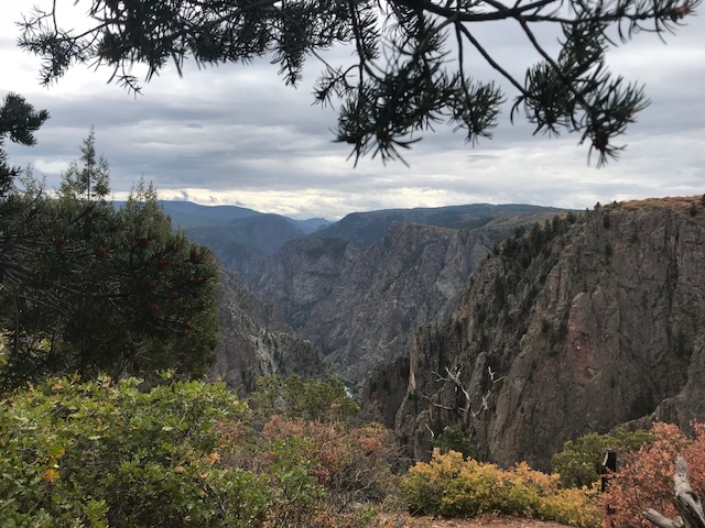 Hiking through the canyon area; beauty triggers, almost demands a reaction, a response. Offering up a challenge to those who inhale its intoxicating fragrance. A sense of humility in the presence of awe. With hard rocks, uplifting and ancient volcanoes laying hand to the creation of such breathtaking splendour. At the Black Canyon of the Gunnison; early explorer’s tenacity and audacity, their volcanic determination intrudes into the molten rock fractures and sedimentary joints of the vertical cliffs. Dizzying views and canyons dwarfing the size of the Empire State Building form intimidating sheer drops and sombre countenance. An unspoken impenetrable/unwavering self-esteem, as slow geologic forces, (the width of a hair per year), erode away at this landscape.