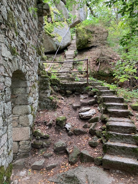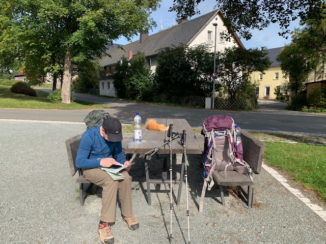 We move through the forests of Frankenwald to the Fichtelgebirge. Though the regions of Thüringen, Oberfranken and Oberpfalz. We cross boarders East and West, skirting Kingdoms, countries and current city lines. The rivers Selbitz, Saale and Eger narrate a past shaped of mills, wealth and toil; of mining, farming, smithing and guild crafts. We pass through the medieval towns of Münchberg, Laubersreuth, Kirchenlamitz and Heidelheim. We conquer the heights of the Waldstein and Kornberg, inhaling views from the top of Großbüchelberg. We light a candle of the faithful at the wood side Fatima chapel, so quietly she listens to prayers unspoken. We pass the Herr Gott Stone, of legendary magic and the granting of wishes. We sit at the Teufel’s Tisch in an invitation to play cards with the devil. We’re introduced to Bockpfeifers (Bagpipers), Napoleon, and the pioneering naturalist Humboldt. We follow ancient way markers through thickets, dark woodlands and medieval fortresses with an era of von Sparneck knights. We hide behind rocks of refuge sheltering gypsies, victims of Wars and the region’s most Wanted. We intersect with the ViaPorta von Volkenroda and the St James Pilgrim Ways, with the long – distance routes of E5 and E6 and develop appetite and appreciation alongside the educational Potato and Carp trails. We walk tracks studded with granite, shale, gneiss, basalt and all manner of geological treasure and meet the ‘porcelain princes’, Hutschenreuther and Rosenthal on roads paved ‘White Gold’.